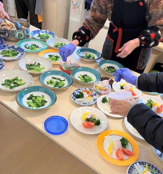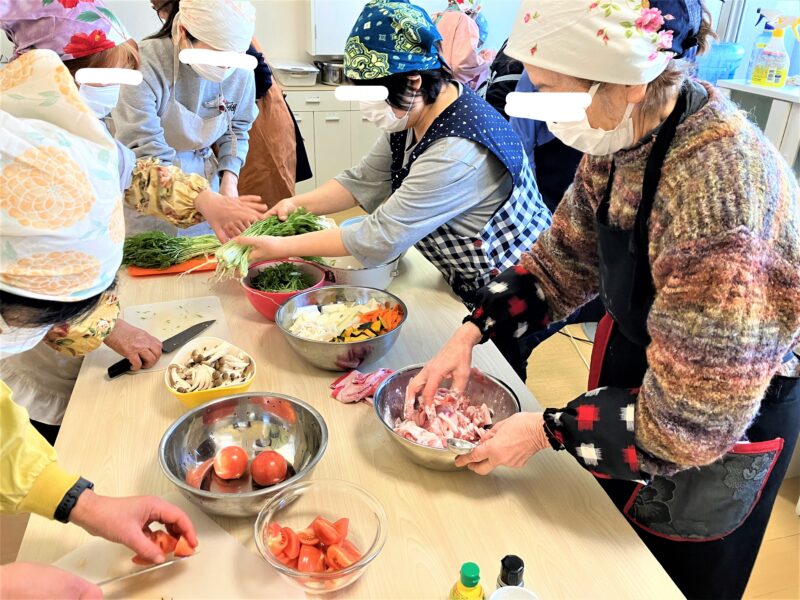 新規の生徒様も増えて新年から賑やかに始まりました。甘酢漬けから先に準備します。きのこや根菜類が多いので切る作業もみんなで。ヨーグルトドレッシングは濃厚ヨーグルトを使いました。家庭では時間がかかりますが水切りヨーグルトで作れます。