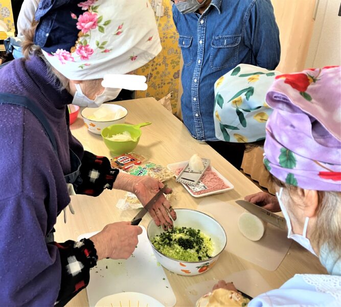 大根で肉餡を包みます。一口サイズや厚めのものがあったりと大きさ色々で楽しいです!