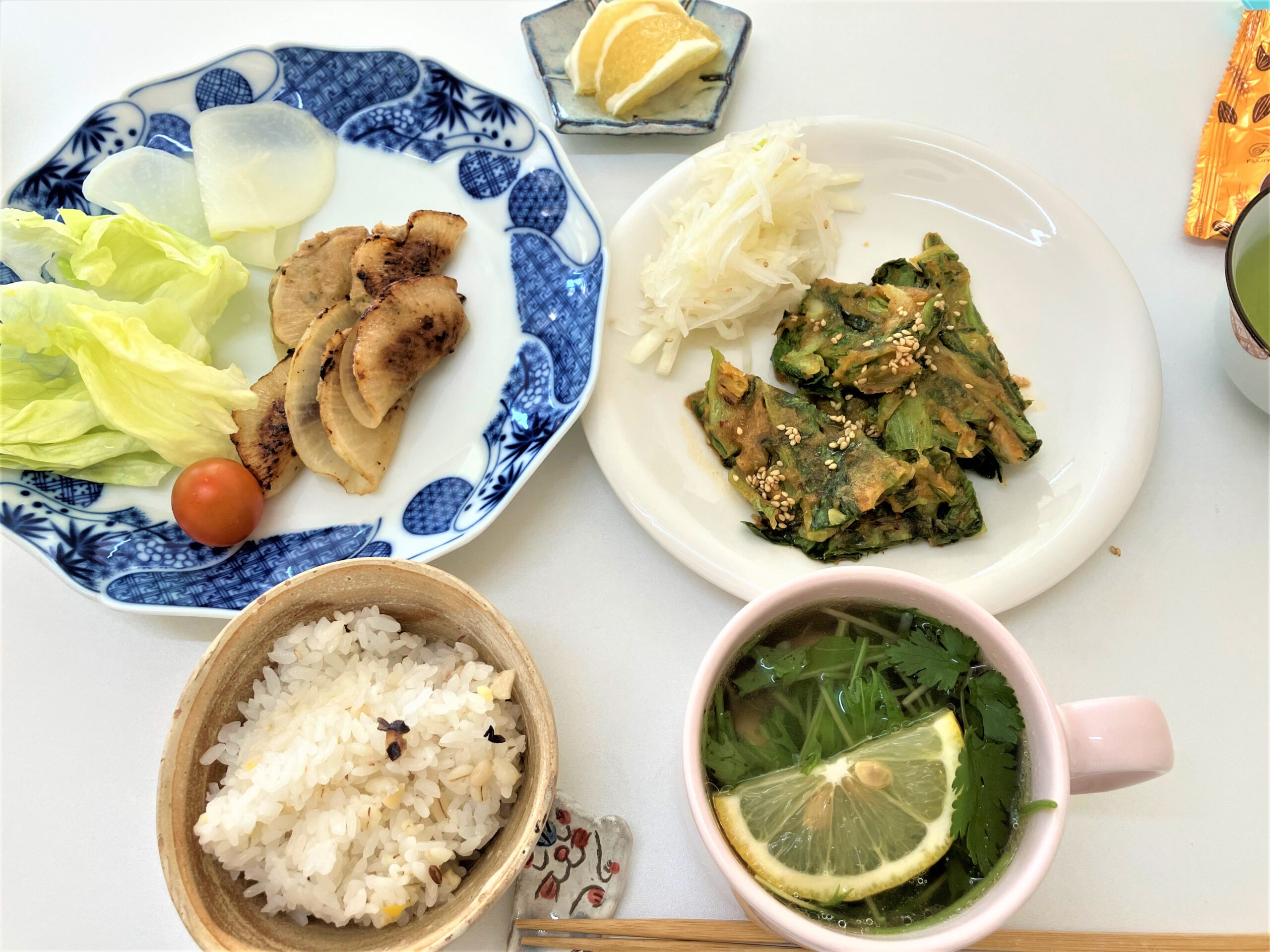 大根でギョウザ キムチ入りチヂミ エスニック風スープ 雑穀入りごはん
