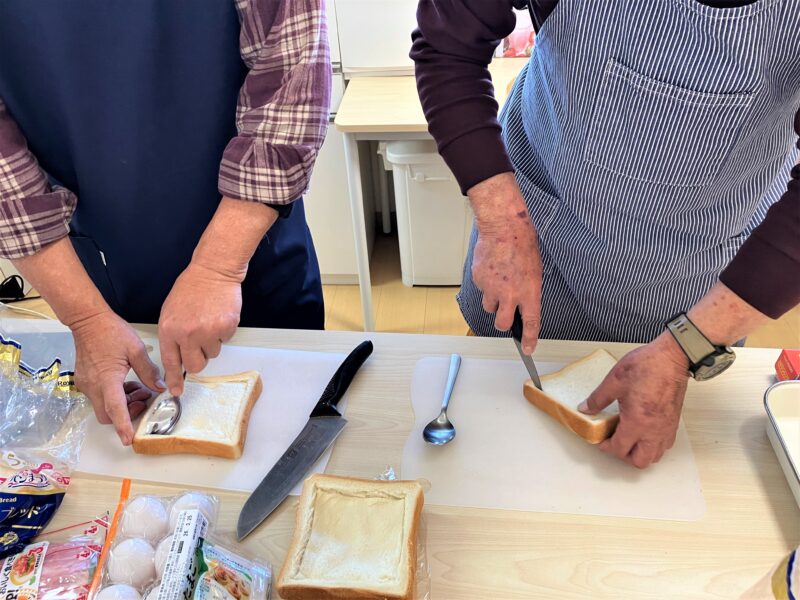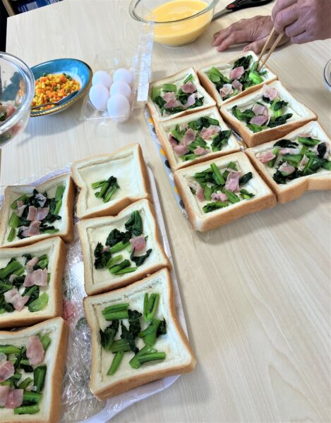 小麦粉を薄くつけて焼いていきます。調味料を入れて絡めたらできあがりです。 最後の教室は4月になります。紫原は桜がきれいな頃でしょうね。