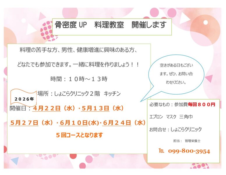 4月~6月 料理教室のご案内 2026 4/10 Warning: Undefined array key "file" in /home/homupeo02/chocolatc-clinic.com/public_html/wp-includes/media.php on line 1788 料理教室